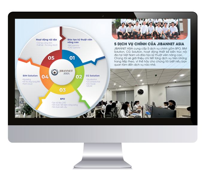 | Ngành nghề hoạt động | JIBANNET AISA cung cấp các dịch vụ BPO ・Nhập liệu, phân tích dữ liệu và lập các tài liệu hồ sơ ・Hỗ trợ kế toán, nhân sự, lao động ・Sử dụng các phần mềm kiến trúc, chủ yếu là BIM để tạo các sản phẩm diễn họa (perspective, video, VR) và hồ sơ bản vẽ kiến trúc ・Thiết kế – Thi công ・Bim services | ||||